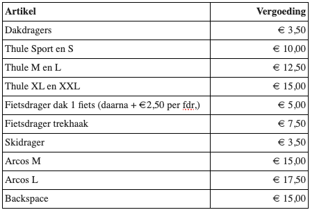 Retourneren op een andere locatie dan waar de gehuurde spullen opgehaald zijn, is in principe mogelijk. Het kan alleen als er geen andere klanten door gedupeerd worden natuurlijk. Wij zijn genoodzaakt hier kosten ad € 15,- voor in rekening te brengen.